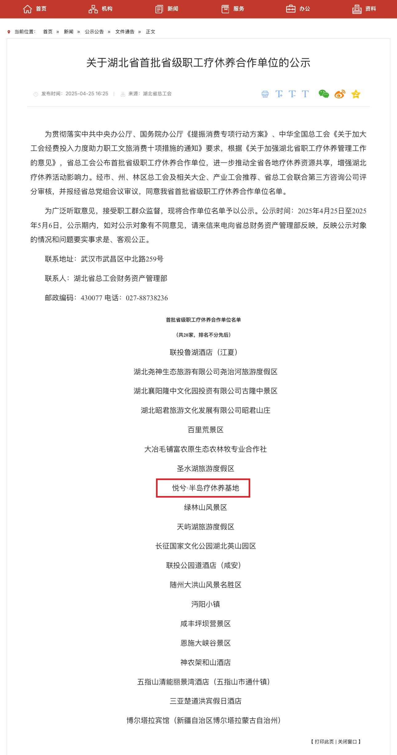 喜報!悅兮半島療休養(yǎng)基地入選省總工會首批省級職工療休養(yǎng)合作單位