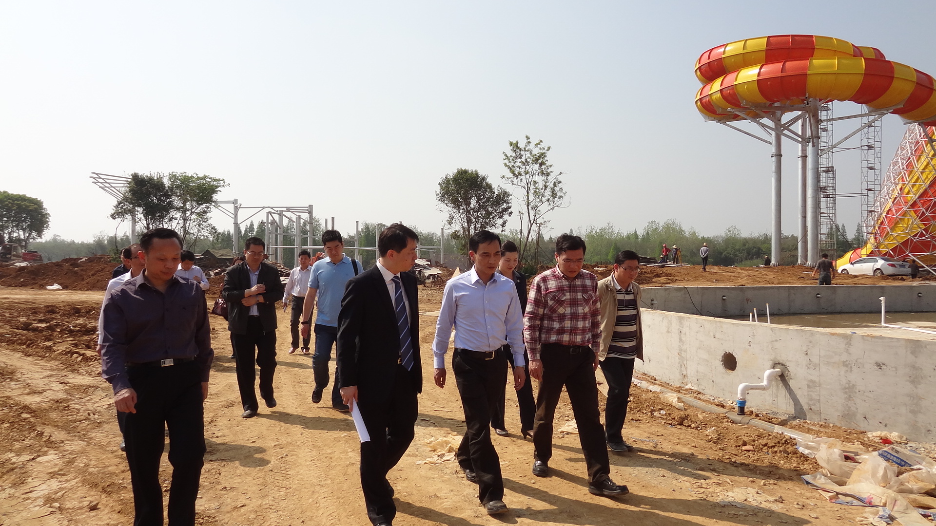 (圖為黃市長(zhǎng)一行實(shí)地考察悅兮水上世界項(xiàng)目)